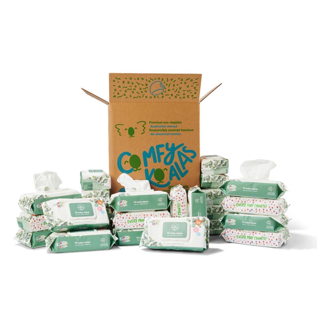 Most baby wipes on the supermarket shelf are made from plastic. Who knew!? Save your fave ‘lil bum from polyester induced irritation, one wipe at a time with Comfy Koalas.